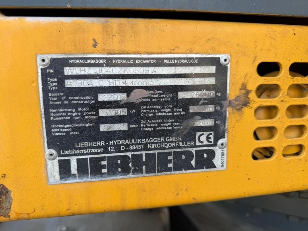 This Liebherr A 904 C HD Litronic is a powerful and reliable wheeled excavator, built in 2012 and equipped with a strong engine delivering approximately 105 kW. The machine is designed for versatile use in earthmoving and industrial applications, offering durability, precision, and efficient performance.
